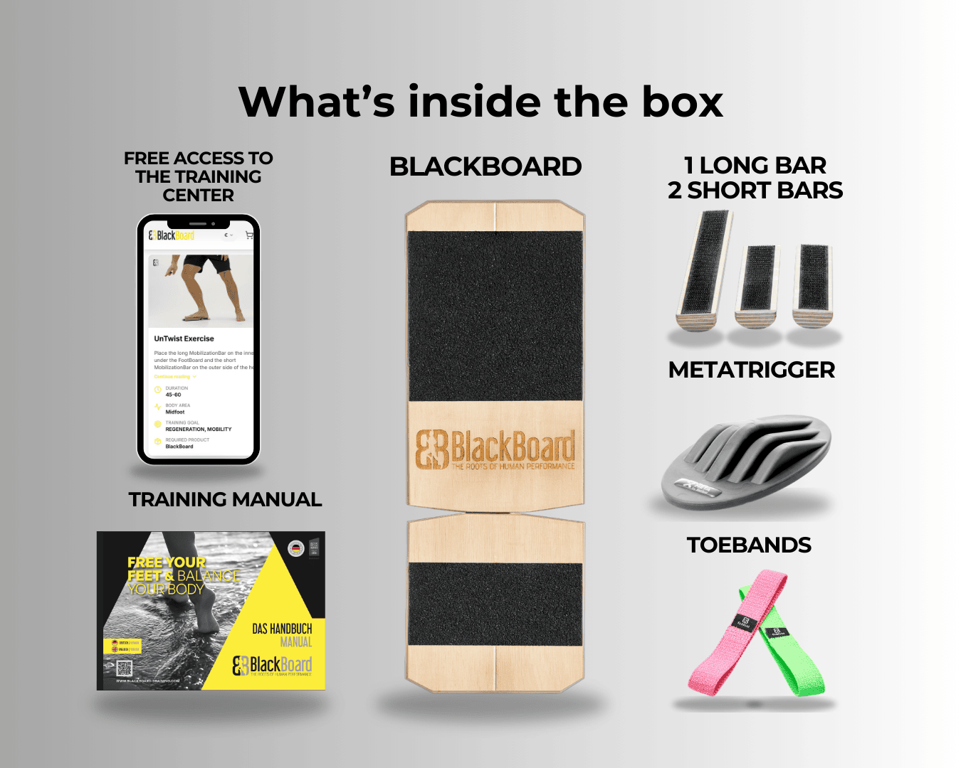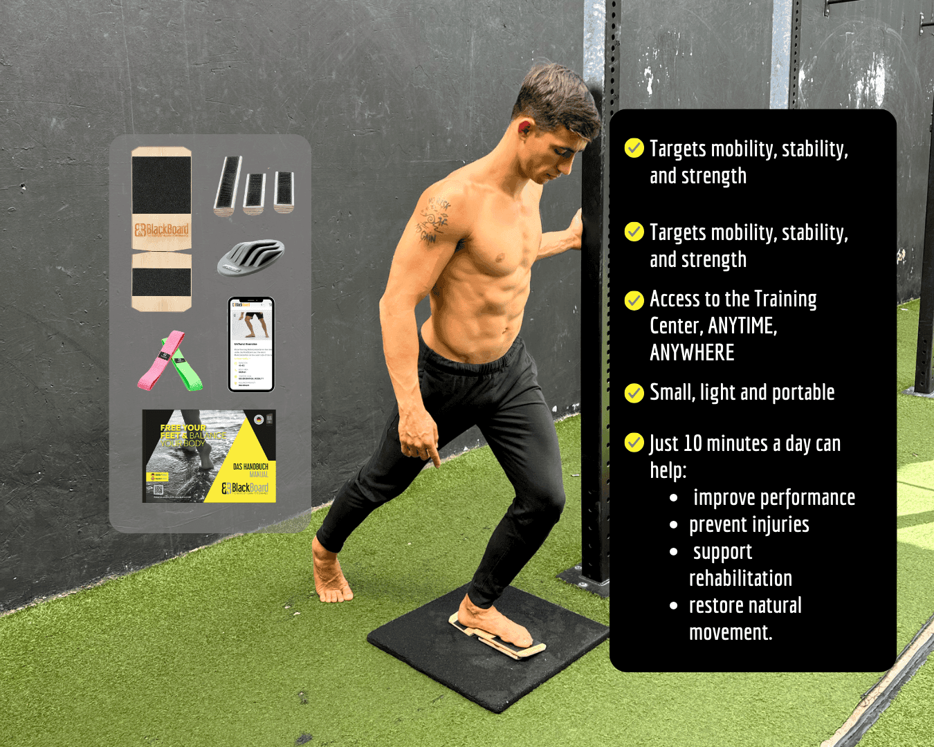 Discover the revolution for healthy feet and physical stability from Germany and grab the BlackBoard Professional Set now at a limited introductory price – including a 360° workout plan for maximum training effect!